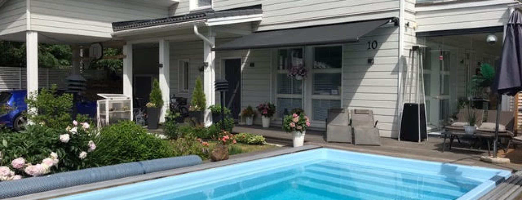 Mäkelän perheen etupihalle tarvittiin suojaa auringolta. Vaalean talon julkisivun suuret ikkunat ja terassi olivat jo aikaisin keväällä auringon armoilla. Edes kukat eivät viihtyneet kuumalla kasvupaikalla, eivätkä perheenjäsenetkään voineet terassilla viettää aikaa.